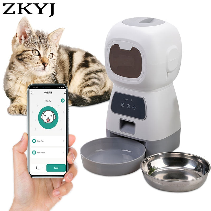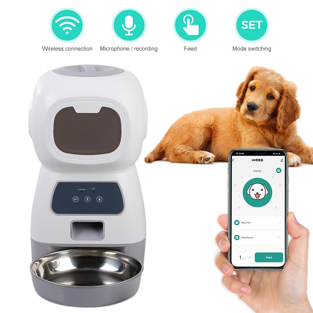3.5L WIFI Automatic Dog Feeder Programmable Pet Smart Feeder Dual Power Mode for Cats and Dogs Stainless Steel Feeding Bowl